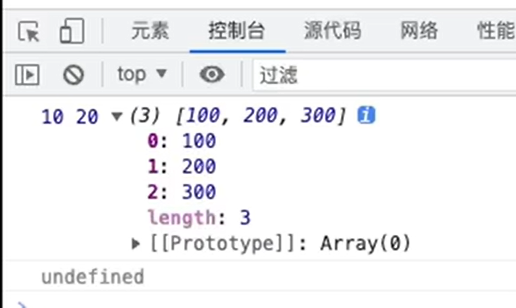 - “…”这里使用三个点来获取剩余的属性都放在该名称内,注意这个只能放在解构的最后一个位置